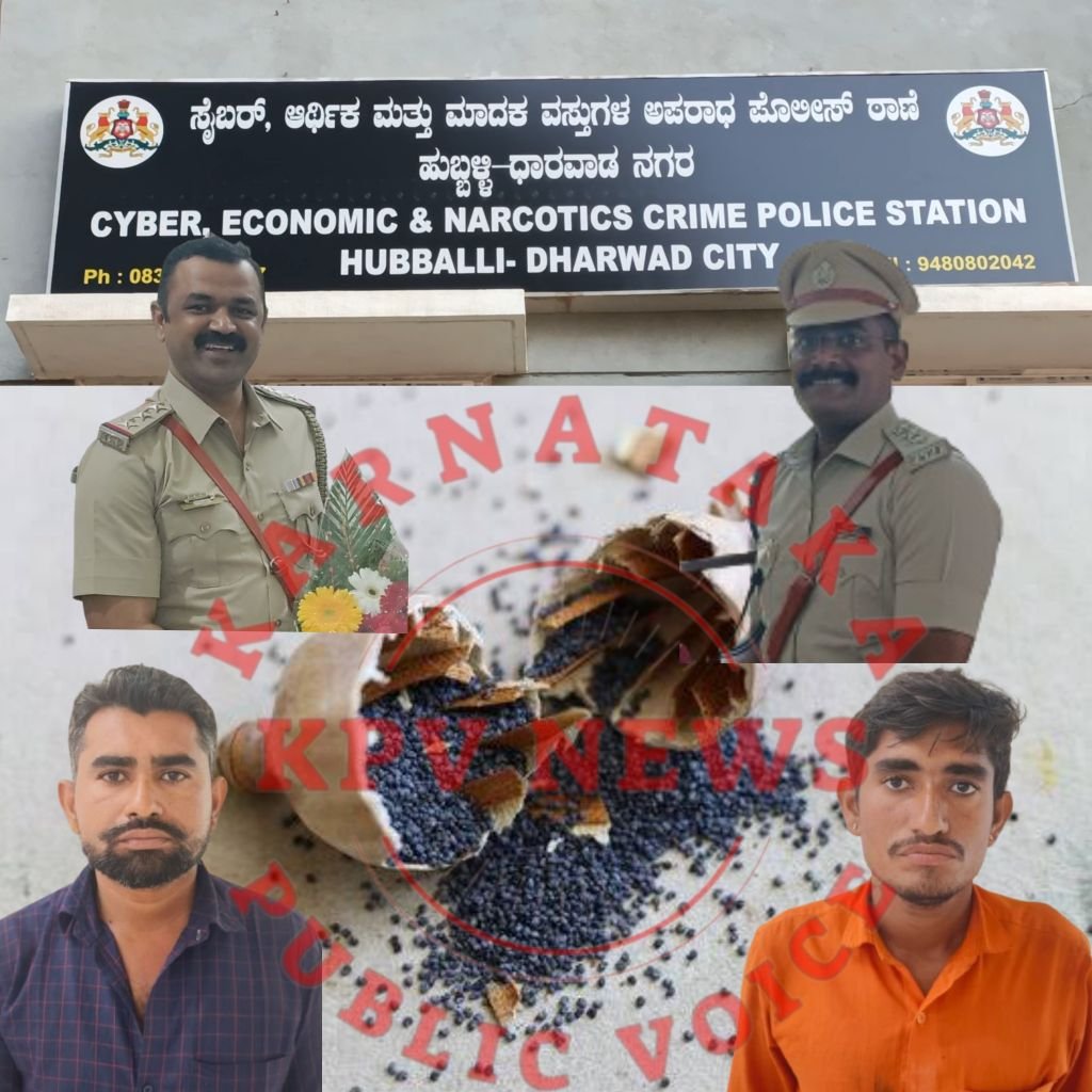 ಹುಬ್ಬಳ್ಳಿ: ನಗರ ಸಿಇಎನ್ ಪೊಲೀಸರು (poppy straw)ಪೊಪ್ಪೆ ಸ್ಟ್ರಾ ಎಂಬ ಮಾದಕ ವಸ್ತು ಡ್ರಗ್ ಮಾರಾಟ ಮಾಡುತ್ತಿದ್ದ ಇಬ್ಬರನ್ನು ಬಂಧಿಸವಲ್ಲಿ ಯಶಸ್ವಿಯಾಗಿದ್ದಾರೆ.