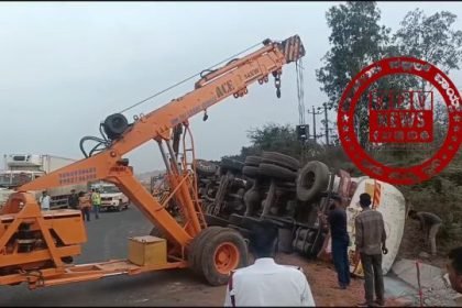 ಕೆಮಿಕಲ್ ಗ್ರೀಸ್ ಸಾಗಿಸುತ್ತಿದ್ದ ಟ್ಯಾಂಕರ್ ಪಲ್ಟಿ…!!